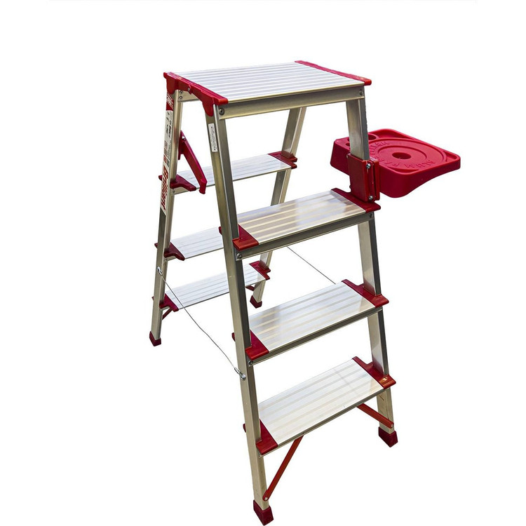 اين نردبان تاشوبا پايه هاى آجدار و پله هايى ايمن و آجدار براى جلوگيرى ازسر خوردن طراحى شده است. از هر دوطرف نردبان میشه بالا رفت