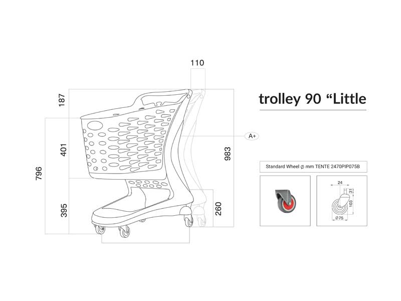 ترولی فروشگاهی 90 لیتری پلی کربنات