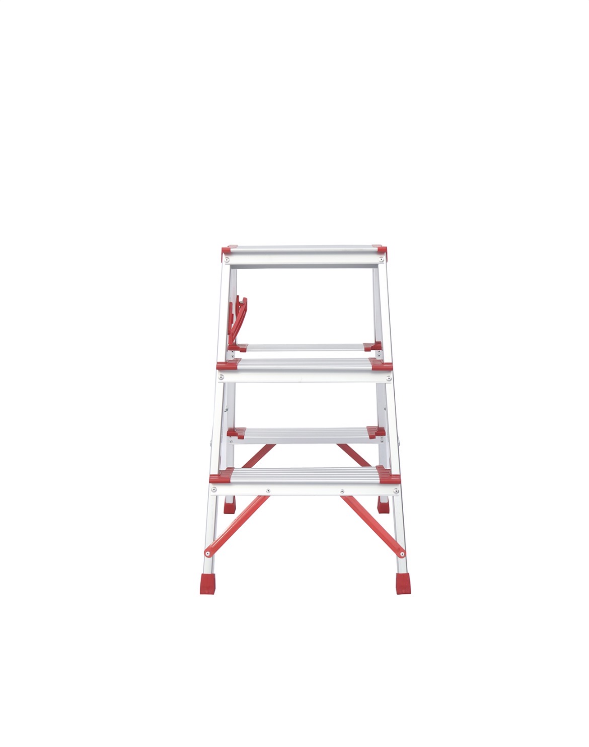 اين نردبان تاشوبا پايه هاى آجدار و پله هايى ايمن و آجدار براى جلوگيرى ازسر خوردن طراحى شده است. از هر دوطرف نردبان میشه بالا رفت