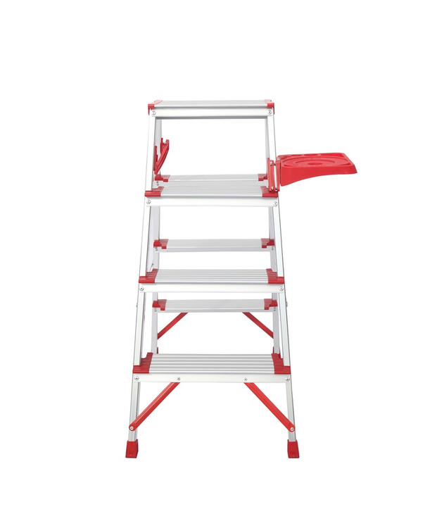 اين نردبان تاشوبا پايه هاى آجدار و پله هايى ايمن و آجدار براى جلوگيرى ازسر خوردن طراحى شده است. از هر دوطرف نردبان میشه بالا رفت