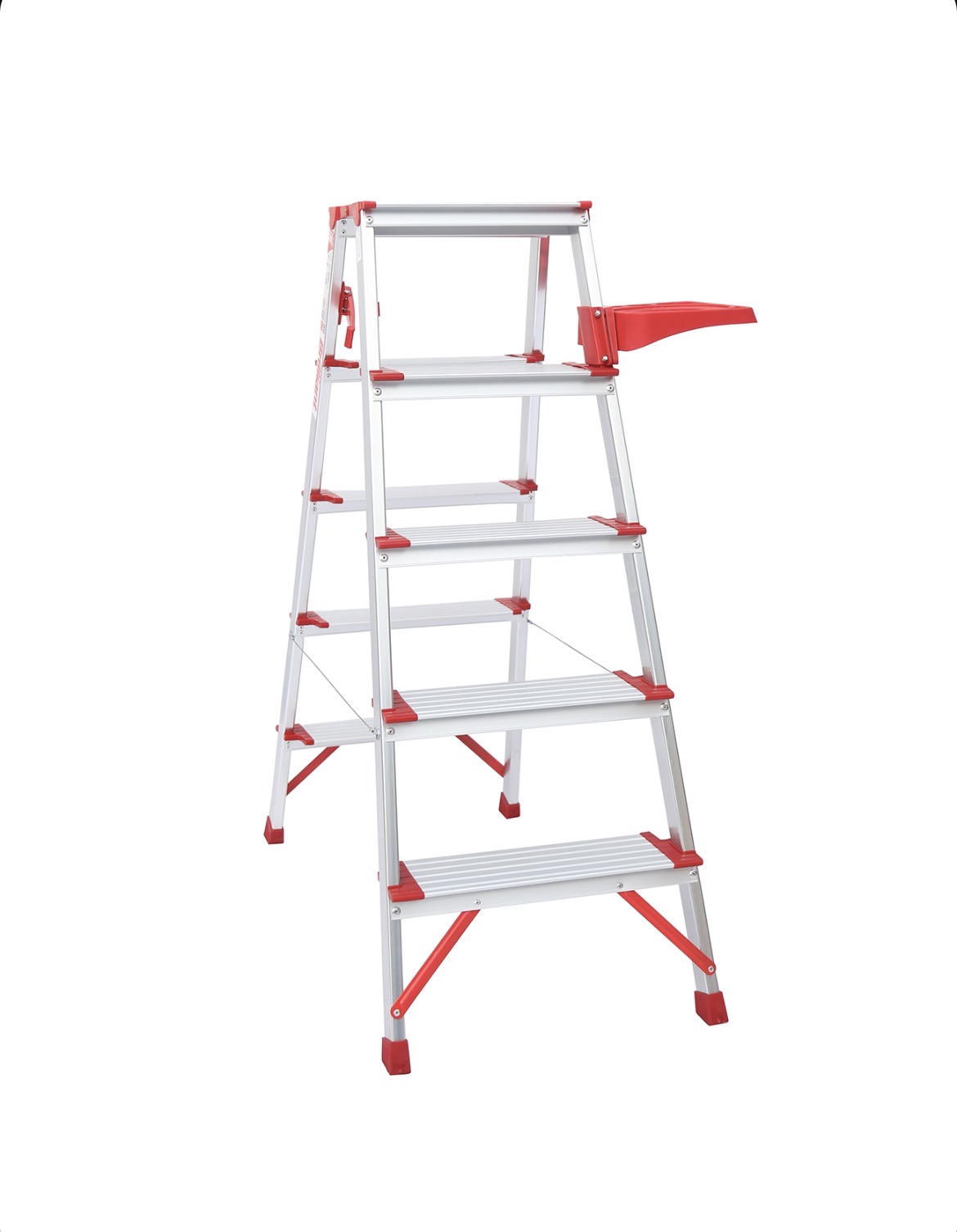 اين نردبان تاشوبا پايه هاى آجدار و پله هايى ايمن و آجدار براى جلوگيرى ازسر خوردن طراحى شده است. از هر دوطرف نردبان میشه بالا رفت